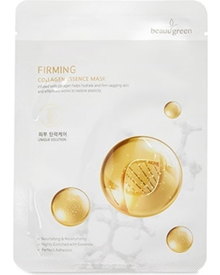 BeauuGreen Firming Collagen Essence Mask. В состав данной маски входит морской коллаген – отличное средство для увлажнения и восстановления эластичности кожи. Высококонцентрированная эссенция состоит также из растительных экстрактов, касторового масла и пантенола. От применения этой чудо маски ты получишь: осветление, защиту от преждевременного старения, ускорение процессов регенерации, выравнивание тона лица, подтяжку контура лица. Маска подходит для всех типов кожи, но с возрастными ограничениями +30.