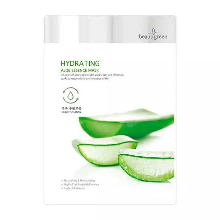 Тканевая маска на нежной целлюлозной основе от BeauuGreen призвана быстро насытить кожу влагой, успокоить покровы, снять признаки отечности и красноты. Сыворотка с высокой концентрацией экстракта алоэ прекрасно справляется с поставленной задачей. За считанные минуты средство возвращает покровам комфорт, оказывает антибактериальное и активное увлажняющее воздействие. Касторовой масло в составе Hydrating Aloe Essence Mask смягчает и очищает от ороговевших клеток. Экстракт гамамелиса давно зарекомендовал себя как безопасный и эффективный успокаивающий компонент. Включенный в сыворотку маски, он отлично работает на чувствительной коже, нормализуя секрецию и поддерживая водный баланс тканей.